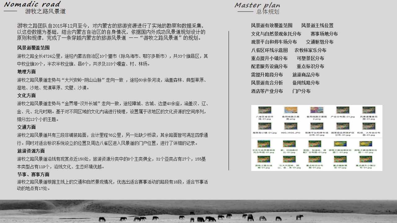 ·公司近4年行程30余萬公里,對內蒙古的旅游資源進行了實地勘察和數據采集,結合內蒙古自治區的自身情況,依據國內外成功風景道規劃設計的原則和規律,完成了一條穿越內蒙古的旅游風景道——“游牧之路風景道”的規劃。