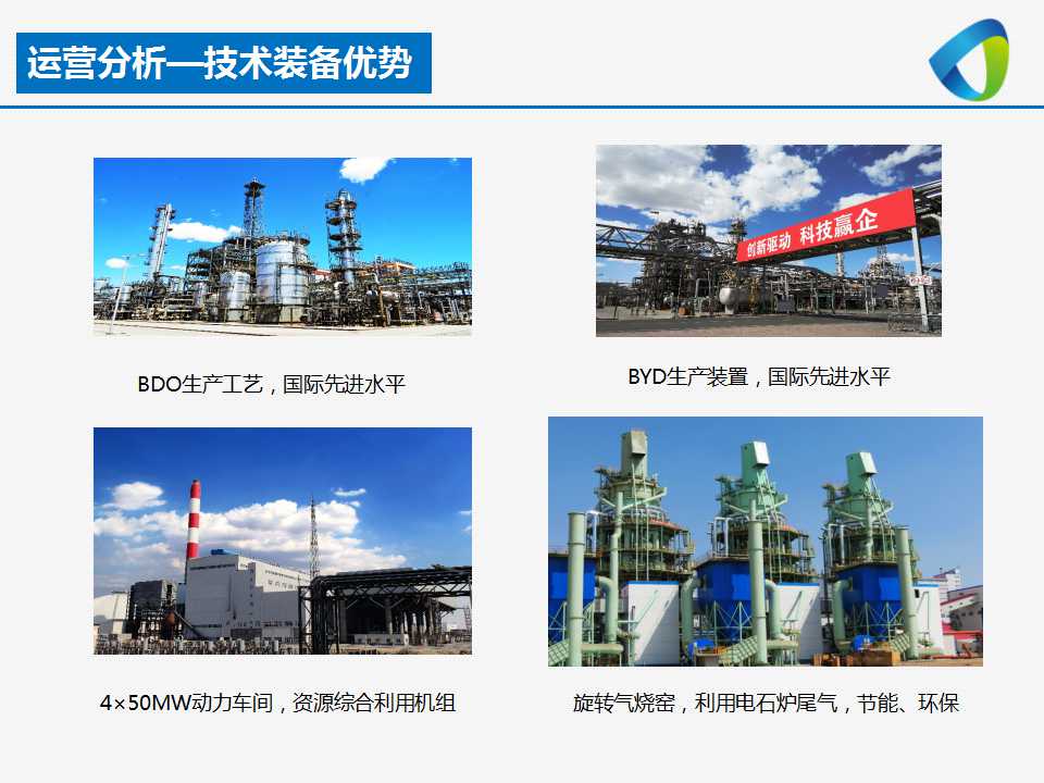 企業成立于2008年,已完成年產10萬噸BDO、24萬噸甲醛、72萬噸電石、70萬噸白灰、4x50MX背壓機組項目,原材料均可實現自給自足,具有絕對的成本優勢;作為西部地區BDO主要生產商之一,生產技術處于國際先進水平,該項目也填補了自治區BDO產業空白;通過10年的發展企業曾獲得高分子材料科學研究院、國家高新技術企業、自治區重點實驗室、內蒙古軍民融合科技創新示范基地等榮譽稱號。