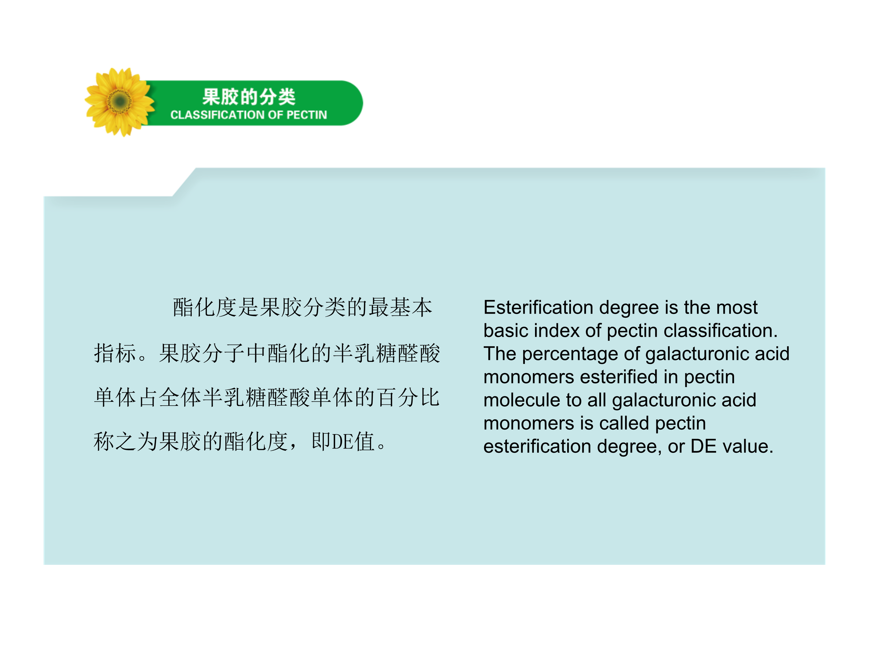 回答:果膠的提取原料主要來自于其它食品工業的副產品,柑橘類果皮由于后期的柑橘榨汁業的發展,為其提供了更多的柑橘渣原料,因此柑橘果膠一度發展。相對的,柑橘果膠的原料來自于榨汁中的副產品,因此原料有極大的限制,受限于榨汁行業。而向日葵果膠的原料,并不受限于原料,向日葵種植成熟收割后,向日葵盤可直接收獲,并不是葵花籽加工過程中的副產品,因此原料容易等到,并且向日葵盤果膠含量高,果膠分子大。