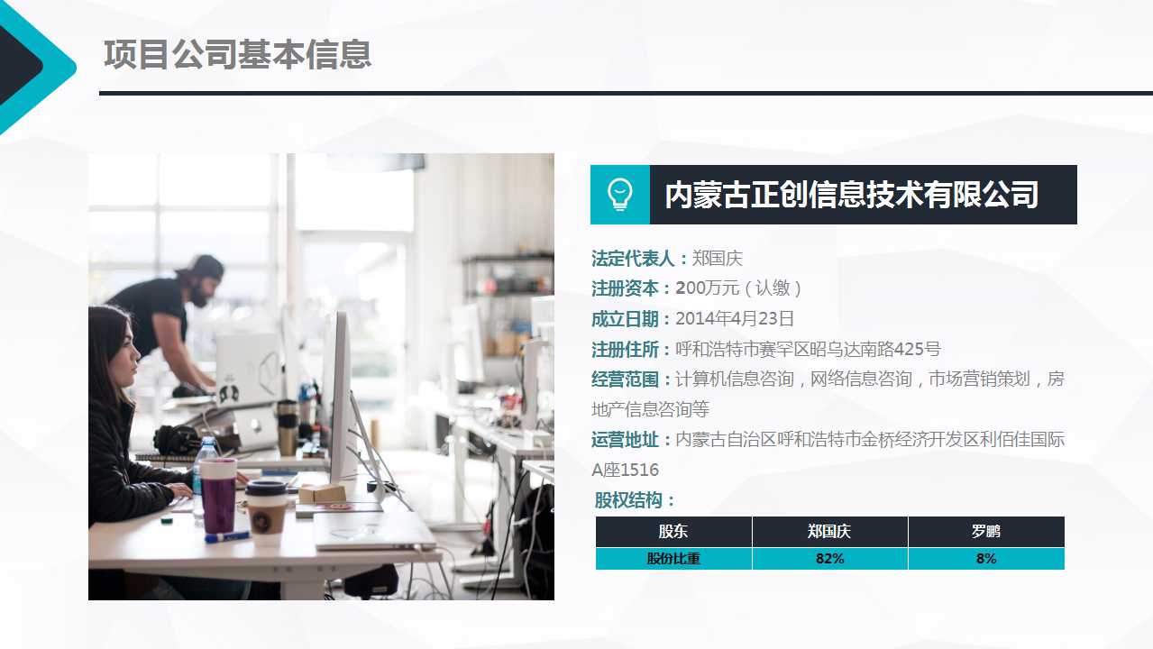 *內蒙古正創信息技術有限公司經營的“i看房”項目為用戶提供房源(新房、二手房)交易、房產新聞、房產社區等服務,實現線上及線下相結合的服務模式。