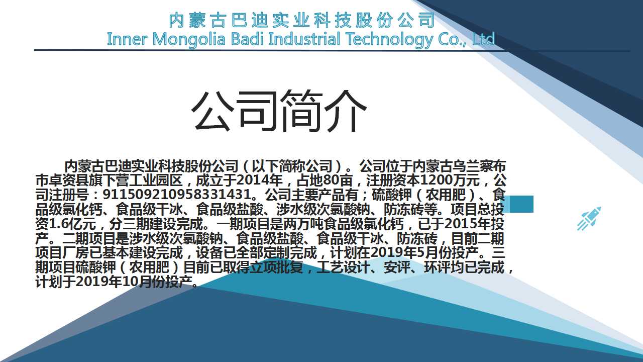 *公司具有食品級氯化鈣、涉水級次氯酸鈉、食品級鹽酸生產經營資質及兩項循環經濟產業鏈,真正實現了企業廢棄物循環再利用。