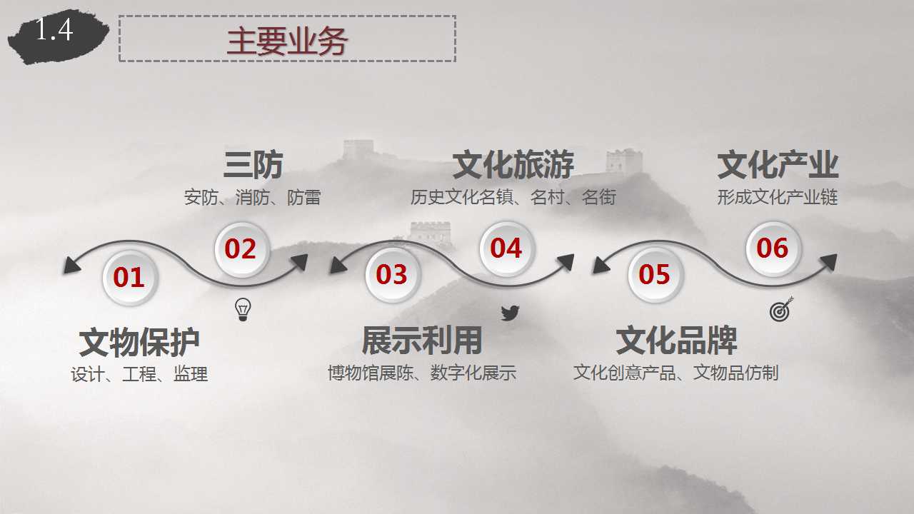 ·內蒙古蒙文盛集團股份有限公司以文物保護、三防、展示利用、文化旅游、文化品牌、文化產業六個方向為主要業務